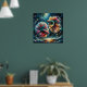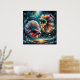 Betta Fish Dance im Tiefen Blauen Ozean Blasen Poster