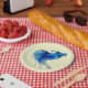 Die Teller sind von einer zauberhaften, blauen Bettdecke mit Aquarell geschmückt!