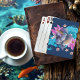 A betta fish with water, lotus flowers and cherry blossoms all drawn in a tattoo style.