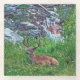 Ein Foto eines männlichen Hirsches, das sich im Gras und in Wildblumen niederlegt, die in einem Wald unter einer natürlichen Steinmauer wachsen. Dieses nah-up Foto eines männlichen Hirsches ist der gleiche Buck in meinem Foto mit dem Titel "A Buck Erholungen at a Cascading River". Image Copyright© 2018 Kimberly J Tilley.