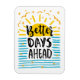 Ermutigen Sie jemanden, der sich mit diesem fröhlichen, handgeschriebenen Stil schwer tut, der die Botschaft in schwarz, mit Pinsel geschriebenen Buchstaben, "Better Days Ahead", umgeben von Aquarellsonne mit Rochen und Sternen und hellblauen Ozeanwellen zeigt.