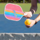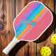 Beunruhigender 80er Neon Sunrise mit Namen gestric Pickleball Schläger