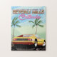 Beverly Hills Urlaubsposter, Beverly Hills 1980er Jahre California Reise-oder Urlaubstext mit einem gelben amerikanischen Sportwagen.