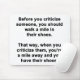 Für den Sarkasmusliebhaber in uns allen. Karo diesen witzigen "Bevor du jemanden kritisierst, solltest du eine Meile in ihren Schuhen laufen. So, wenn Sie sie kritisieren, werden Sie ein Mile Away und haben ihre Schuhe" Design auf Bekleidung, Tasse, Mousepads, Knöpfen, und andere einzigartige Geschenke