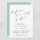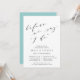 Einfache und elegante Probe-Dinner-Einladung zeigt "bevor wir sagen, ich tue" in schicken modernen Kalligrafiebuchstaben. Personalisieren Sie mit Ihrer Zeremonie Probe und Abendessen oder Feiern Details unten. Probe Dinner Einladungen umkehren zu soliden, türkisfarben aquamarin.