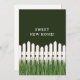 Neue Zuhause-Ankündigung mit weißem Picketzaun und Gras. In unserem Karo finden Sie die passende Kollektion für KOORDINIERENDE Objekte.