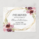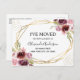 Moderne und elegante florale Imitats Gold Foil Geometric Watercolor Spring Burgundy und Blush Pink Floral Blume Ich habe Moved New Zuhause oder New Address Cards - beinhaltet schöne und elegante Schrift Typografie mit modernem Blumenmuster und Grün für die besondere New Zuhause oder New Address Feier.