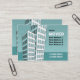 Eine bewegliche Kartenvorlage mit einem Cartoon, der Wohnblöcke/Wohnblöcke zeichne. Bereit für Ihre neuen Details. Das Design auf der Rückseite ist das gleiche wie die Vorderseite ohne den Text.