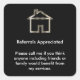 Klassische Empfehlungs-Aufkleber mit dem Bild eines silbernen Look-House-Symbols, die als Realtor Referral Wertschätzungs-Aufkleber für Ihre gesamte Kommunikation mit Kunden oder potenziellen Zuhause-Käufern verwendet werden, um die Idee zu fördern, Kunden-Referrals zu senden Ihren Weg. Es ist Ihre Art des Sprichworts, für das Sie bereit sind, für Geschäfte zu arbeiten.