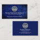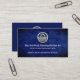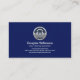 Auf der Rückseite, in einem blauen Deckel, ist das silberne Logo oben, gefolgt von Ihrem prestigeträchtigen Namen, Job Titel und die Kontaktdaten.