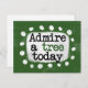 Der fette Text "Admire A Tree Today" zentriert sich vor einem naturgrünen Hintergrund. Der schwarz-grüne Text sitzt auf einem weißen Rechteck mit großen, texturierten weißen Punkten, die einen spielerischen Kontrast zum Hintergrund der soliden Farbe bieten.
