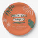 Entdecken Sie die Palmen und die tropische minimalistische moderne und lustige Feier Dekoration Papierschild Design. Moderne orange, grün und rosa Farbgebung.