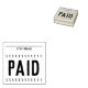 Dieses Design aus Gummi-Briefmarke enthält die Nachrichten "Bezahlen", ein Pfund-Zeichen und eine Zeile, wo ein Zahlungsdatum geschrieben werden könnte. Es könnte vielleicht verwendet werden, um anzugeben, dass eine Rechnung oder Rechnung vollständig bezahlt wurde.