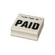 Diese Briefmarke beinhaltet die Nachrichten "PAID" und eine Zeile, in der ein Zahlungsdatum geschrieben werden kann. Es könnte vielleicht verwendet werden, um anzugeben, dass eine Rechnung oder Rechnung vollständig bezahlt wurde.