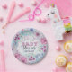 Feiern Sie die Ankunft eines kleinen mit Eleganz und Charme! Diese individuell gestaltbare Babyduschplatte ist mit einem zarten, handgezeichnet Blumenmuster geschmückt, das in sanften Pastellfarben aus Rosa, lila, Blau und Grün blüht. Der skurrile Grafikstil zeichnet sich durch eine detaillierte Linienarbeit aus, die einen Spitzeneffekt erzeugt, der ausgeklügelt wird. Im Mittelpunkt des Designs wird der Text in einer harmonischen Mischung aus kursiven und gedruckten Schriftart angezeigt, wobei betont wird, dass die Details für Ihren besondere Anlass personalisiert sein können. Ideal für ein "Baby in Bloom"-Thema, fügen diese Teller Ihrer Babydusche eine Touch von Personalisierung und Stil hinzu und machen sie zu einer Veranstaltung, an die Sie sich erinnern können. Ob Sie nun einen Tisch für einen Brunch oder ein komplettes Buffet planen, diese Teller verbinden Funktionalität mit individuellem Flair und sorgen dafür, dass Ihre Feier schön und praktisch ist.