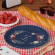 Bezaubernde Burgundy Blauer Blumengarten Taufe Pappteller