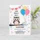 Bezaubernde Eule mit Balloons & Herz Babydusche Einladung