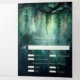 Eine skurrile Aquarellabbilderung üppigen Blattwerks in smaragdgrün, glitzernd mit Feenlampen und zauberhaftem Staub, schmückt die Sommereinladung mit einem bezaubernden Waldthema und einem All-in-One-Hochzeit im Herbst. Eine elegante, moderne Einladung für eine märchenhafte Hochzeit, inklusive der Detailkarte und der UAWG. Es hat auch eine Vorlage für ein Foto des Paares. Ideal für Brautpaare, die die Märchenwaldlandschaft, den Märchenwald oder den Märchengarten mit smaragdgrün, mauve und gold Liebe und ein Siegel und senden möchten, alles in einem Format für ihre Hochzeitsarbeit.