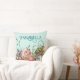 Dieses zauberhafte und skurrile Kissen besticht durch ein bezauberndes Waldthema. Ein Bild einer Feentür in einem kleinen Pilzgarten befindet sich ganz unten, über dem eine Märchengestalt liegt. Unterhalb der Anlage befinden sich verschiedene Blume und Pilze. Der Hintergrund ist ein verblasstes aquamarines Muster.