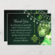 Diese bezaubernde, flache Hochzeitskarte mit einem schönen keltischen Design mit einem bezaubernden Kleeblatt und Saitenleuchten auf grünem Hintergrund. - Vielen Dank für Ihren Text - "Danke, dass Sie unseren besonderen Tag mit uns gefeiert haben! Wir sind so dankbar für Ihr großzügiges Geschenk und Ihre guten Wünsche. Wir hoffen, dass Ihnen der Tag so viel Spaß gemacht hat wie wir, Liebe und Dank,<Names>" - Der Dankeschön-Text kann personalisiert zu lesen sein, wie Sie möchten.
