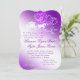 Pferd gezeichnet Kutsche mit Herz und Monogramm, märchenhafte Hochzeitseinladung in lila.