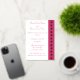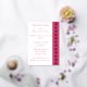 Mit dieser Hochzeitseinladung mit einem hellen Himbeerrosa Rahmen auf der rechten Seite, der mit einem in echter Folie bedruckten Muster von Kirschblüten geschmückt ist, verleihen Sie Ihrem Anlass eine Touch Frühlingscharme. Die links Kartenseite bietet viel Platz für alle Details für Ihre Veranstaltung. Dazu gibt es einen Beispieltext, der an Ihre Bedürfnisse angepasst werden kann. Eine große, hellrosa Sakurenblüte endet auf der Rückseite, um eine süße finale Note zu schaffen. Diese Einladung wird mit jedem anderen Charming Sakura in Raspberry Produkt übereinstimmen, sodass Sie Ihre Veranstaltung so koordiniert gestalten können, wie Sie es wünschen.