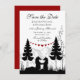 Bezaubernde Silhouette Mountain Bär Couple Wedding Save the Date Announcement Cards in Schwarz, Weiß und Rot. -