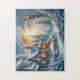Bezaubernde Winter-Hütte im Mondlicht Puzzle