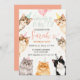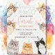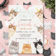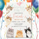 Mit dieser charmanten Kätzchen-Einladung laden Sie Ihre Freunde zum puren Party ein! Dieses bezaubernde Design zeigt sieben verschiedene Aquarellkatzen, die Party-Hüte tragen, die den Text umschließen und bereit sind, "PAW-TY" zu machen. Der weiche Hintergrund ist mit rosa Ballons und Konfetti betont, was einen unterhaltsamen, spielerischen Ton ausmacht. Es ist die ideale Einladung für jeden Katzenliebhaber, Kindergeburtstag oder ein Fest zum Thema Haustiere. Personalisieren Sie es mit dem Ehrengast (z.B. "Sarah's"), dem Datum, der Uhrzeit, der Adresse und den UAWG!
