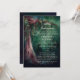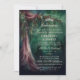 Eine skurrile Aquarellbilder eines majestätischen Baumes, mit üppigem Blattwerk und blumigen Details in smaragdgrün und mauv, mit einem feminin-lila-rosa Schleier über einem Ast, leuchtend mit Feenlampen und zauberhaftem Staub, schmückt diesen Frühjahr Sommer Winter Quinceañera Einladung mit einem verzauberten Waldthema. Eine elegante, moderne Einladung für ein Märchen Quinceañera. Ideal für Lieben, die die Märchenwaldlandschaft, den Märchenwald oder den Märchengarten mit smaragdgrün, mauve und gold kennenlernen.