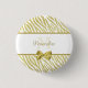 Ein bezaubernder Designerknopf für Frauen mit einem Weiß und einem Goldzebramuster und ein elegantes Goldband gebunden in einen girly Bogen. Personifizieren Sie diesen Chic und stilvolle Tierdruck-Button, indem Sie Ihre Namens- und mit Monogramm Initialen addieren. Ebenedruckbild, nicht tatsächliches Band.
