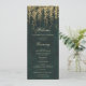 Eine skurrile Aquarellbilder von üppigem Blattwerk und vergoldeten Baumzweigen (digitaler Effekt, keine echte Folie) auf einem smaragdgrünen Hintergrund, glitzernd mit Feenlampen und zauberhaftem Staub, schmückt diese Sommer-Hochzeit im Herbst im Winter mit einem bezaubernden Waldthema. Ein elegantes, modernes Hochzeitsfeierungsprogramm für eine märchenhafte Hochzeit. Ideal für Brautpaare, die die märchenhafte Waldlandschaft, den Märchenwald oder den Märchengarten mit smaragdgrünen Lieben.