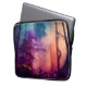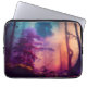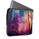 Bezauberter Wald mit lila Baum und feuchtem Laptop-Gehäuse.