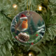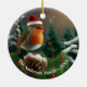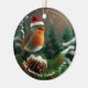 Bezauberndes Rotkehlchen über einem schneebedeckte Keramik Ornament