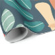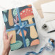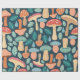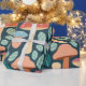 Ein skurriles Muster, das eine Vielzahl von bunten Pilzen und grünen Elementen auf einem dunklen aquamarinen Hintergrund zeigt und den zauberhaften Charme eines bezaubernden Waldes widerspiegelt.