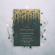 Eine Illustration von Baumzweigen mit üppiger, wilder Vegetation und hängender Laube, digital mit Gold geschichtet, über einen glitzernden smaragdgrünen Hintergrund, schmückt diese Sommerhochzeit mit einem bezaubernden Waldthema. Eine elegante, moderne Einladung für eine märchenhafte Hochzeit ist die perfekte Einladung für Brauten, die die märchenhafte Waldlandschaft, den Märchenwald oder den Märchengarten und das smaragdgrüne Liebe suchen.