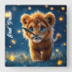 Bezauberter, blau-mit Augen Löwenwürfel in glühend Quadratische Wanduhr