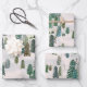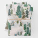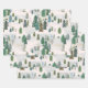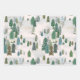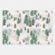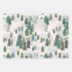 Handgemaltes Urlaubsprojekt mit einem wintergrünen Pinienwald auf elfenbeinfarbenem, schneebedecktem Hintergrund.