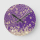 Bezauberung Mandalas mit Gold Stars auf Lila Runde Wanduhr