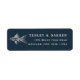 Coastal schicke Rücksendeadressen-Aufkleber zeigen Ihre Rücksendeadresse in Elfenbeinbuchstaben auf einem marineblau-reichen Hintergrund und zeichnen sich durch eine Vintag geätzte Fischillustrierung aus.