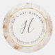 Moderne geometrische Floral Gold Glitzer Rücksendeadresse Label, klassischer Rundaufkleber." Elegantes Rücksendelabel, das sich als Umschlag Aufkleber verdoppeln kann, indem es eine elegante Touch zu Ihrer Einladung hinzufügt. Handgeschriebene Skripttypografie mit Name, Adresse und Mono des Absenders über einen modernen, schlichten, vergoldeten, geometrischen Rahmen mit abgerundeten Rundkreisvelen. Der Hintergrund ist ein romantischer, kaum rot rosa, orchidealer Hintergrund. Grafisch entworfen von Audrey Jeanne Roberts, international lizenzierter Künstlerin und Designer, Copyright.