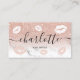 Eine elegante, moderne, stilvolle Visitenkarte mit eleganter Schrift Handschrift Stil Typografie in Weiß auf einem Imitat Rose Gold Glitzer ombre auf modernem weißem Marmorboden und essbare Lippen und Kuss. Wenn Sie eine Anpassung benötigen, zögern Sie nicht, mich zu kontaktieren.