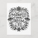 Manifest dein Traumleben Postkarte. Manifesting meine Träume Bejahung für geistige Mädchen Zimmer Dekor Geschenk Idee. Göttliche weibliche Energie Blume Pflanze boho ästhetische Gesetz der Anziehung kleine Drucke Schrift Illustration.