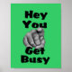 Kleines grünes Poster mit einem Finger, der von der Hand zeigt