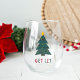 Der Baum ist nicht das Einzige, was dieses Jahr angezündet wird. Unser lustiges Weihnachtsthema stemless Weinglas zeigt das Zitat in festlich rot und grün ausgeschnittenen Schriftzeichen unter einer Weihnachtsbaumillustrierung.