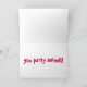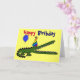 Hilarious cartoon crocodile in a party hat with balloon says Happy Birthday on the outside and says: you party animal! on the inside. Cute and fun.