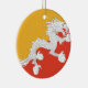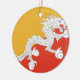 Die bhutanische Flagge ist eine diagonale Markierung mit einem Emblem. Die verwendeten Farben in der Flagge sind orange, gelb, weiß. Der Anteil der bhutanischen Flagge beträgt 2:3. Die Flagge Bhutans wurde 1969 adoptiert. Die erste Verwendung der aktuellen Flaggengestaltung erfolgte 1947. Die letzte Änderung an der aktuellen bhutanischen Flaggengestaltung erfolgte 1969.