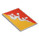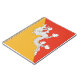 Die bhutanische Flagge ist eine diagonale Markierung mit einem Emblem. Die verwendeten Farben in der Flagge sind orange, gelb, weiß. Der Anteil der bhutanischen Flagge beträgt 2:3. Die Flagge Bhutans wurde 1969 adoptiert. Die erste Verwendung der aktuellen Flaggengestaltung erfolgte 1947. Die letzte Änderung an der aktuellen bhutanischen Flaggengestaltung erfolgte 1969.