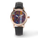 Uhr, Klassische Damenuhr mit schwarzen Lederarmband