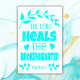 Der Herr heilt die Brokenherzen, Poster, auf Archival Heavyweight Paper (Matte) in Türkis auf Weiß, das ein Gefühl von spiritueller Resonanz ausstrahlt.